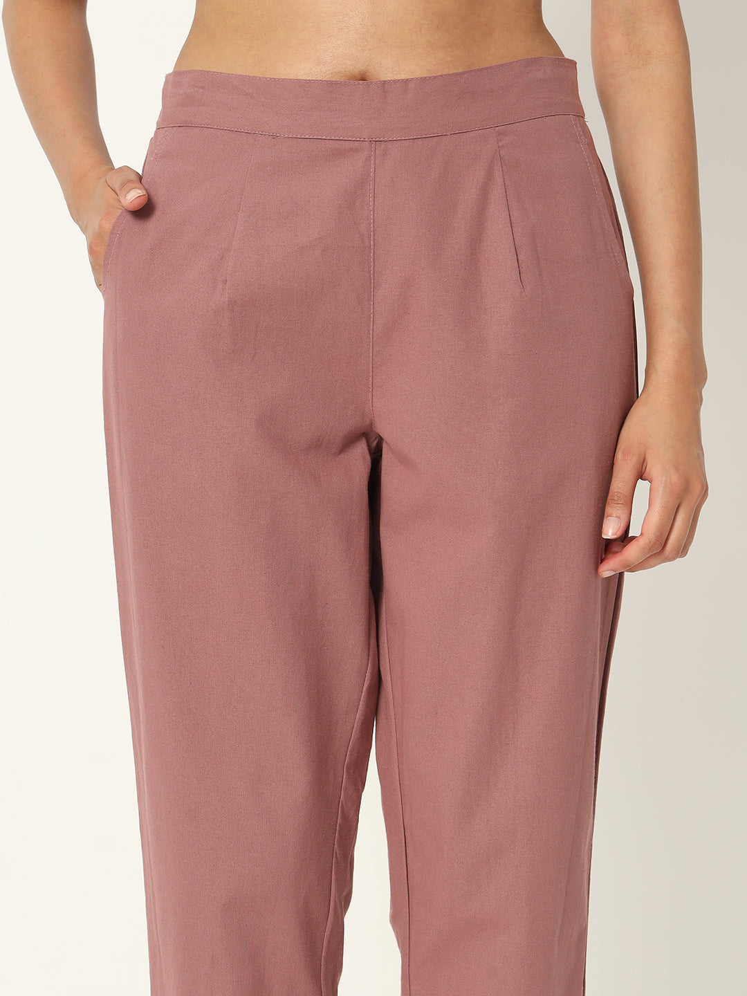 Rose Taupe Cotton Pants & trousers, slip-on closure, and 2 pockets