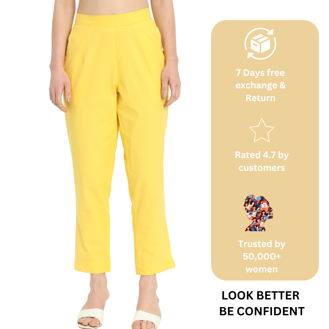 Yellow Cotton Pants & trousers, slip-on closure, and 2 pockets